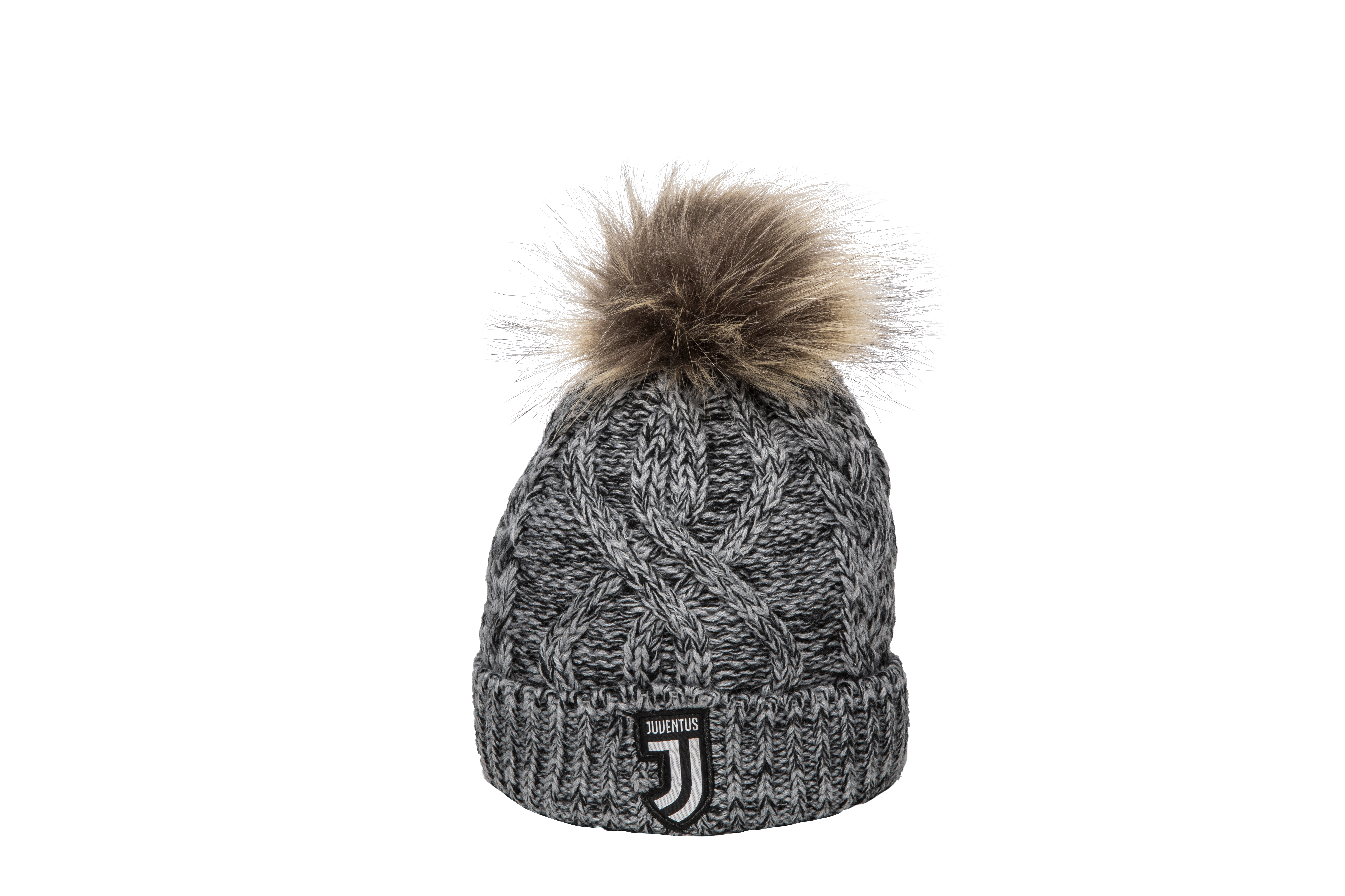BERRETTO IN ACRILICO POM POM MELANGE CON PELO LAVORATO A MAGLIA
